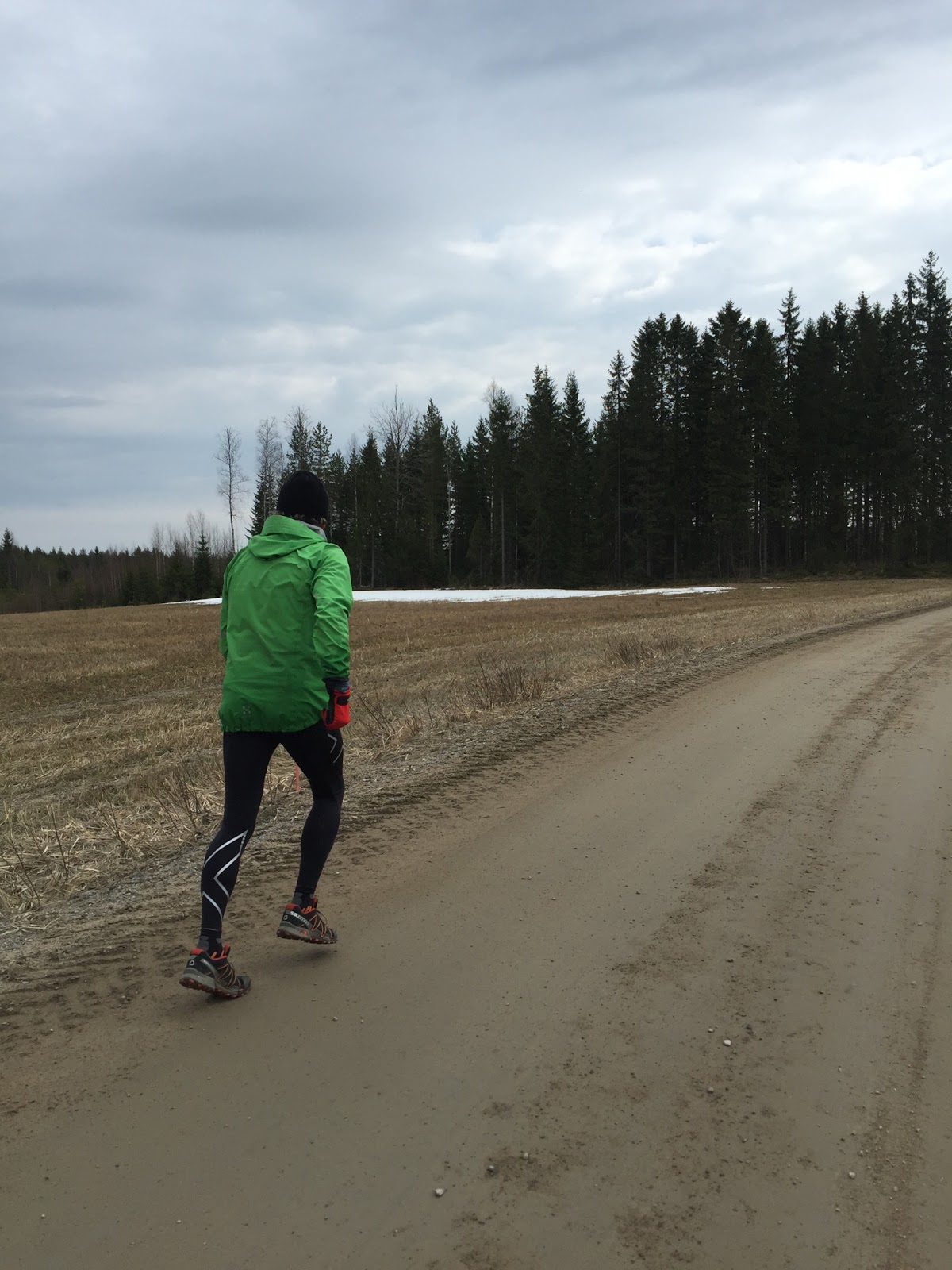 Ollaan kokeiltu kaikkia mieleen tulevia vaihtoehtoja siirtymiin. Joskus ollaan jätetty toinen auto alajuoksulle, joskus pyörät ja aika monta kertaa juostu takaisin lähtöpaikalle. Matkaa siirtymään tulee 8-14 km reittivalinnoista riippuen. Tällä kertaa päädyttiin yhteen autoon ja puutuneisiin jalkoihin. Ajateltiin säästää aikaa, kun ei tarvinnut tsommitella pyöriä kyytiin ja ajella edestakaisin.